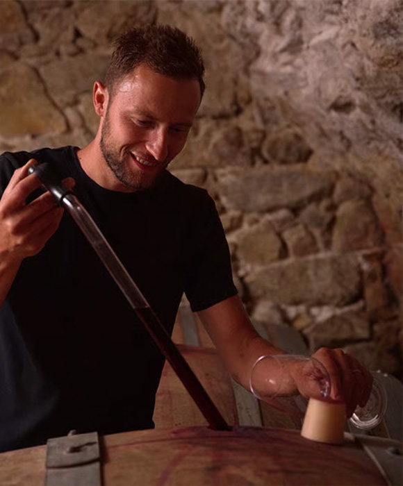 Domaine Jolivet ligt in het noordelijke deel van de Rhônevallei, in Saint-Jean- de-Muzols, het historische hart van het herkomstgebied Saint-Joseph. Het huis wordt geleid door Bastien Jolivet, derde generatie wijnmaker van de familie. Het huis produceert al lange tijd wijn, maar nam een nieuwe route toen Bastien zijn vader in 2014 opvolgde en stopte met het leveren van druiven aan de lokale coöperatie om onder eigen label te gaan produceren. Bastien had toen, ondanks z’n jonge leeftijd, al ervaring opgedaan bij gerenommeerde Franse wijnhuizen en bij verschillende wijnboeren in Nieuw-Zeeland en Zuid-Afrika. Vandaag de dag telt het domaine 8 hectare wijngaard, met voornamelijk rode en witte Saint Joseph, aangeplant op een steile heuvel met zuidelijke expositie en talrijke stenen muren die de aarde vasthouden. De granieten bodem is ideaal voor de teelt van syrah. Het werk in de wijngaard gebeurt met de hand, de vinificatie is traditioneel met gisting op stalen tanks en opvoeding op eiken vaten. Bastien Jolivet maakt zeer evenwichtige wijnen van topkwaliteit en wordt gelauwerd door de internationale wijnpers. Hij werd onder meer uitgeroepen tot Ontdekking van het Jaar 2020 door La Revue du Vin de France.